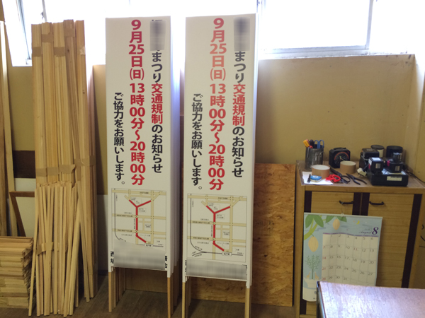 捨て看板はイベントの告知や案内、交通規制や注意喚起などによく使用されます。