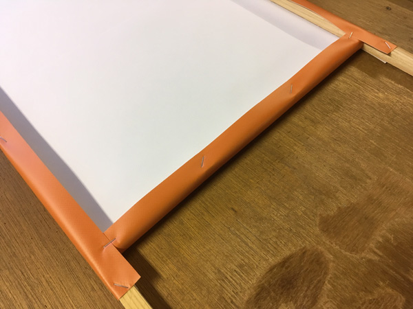下部はハサミでカットして木枠に巻き込んでとめております。