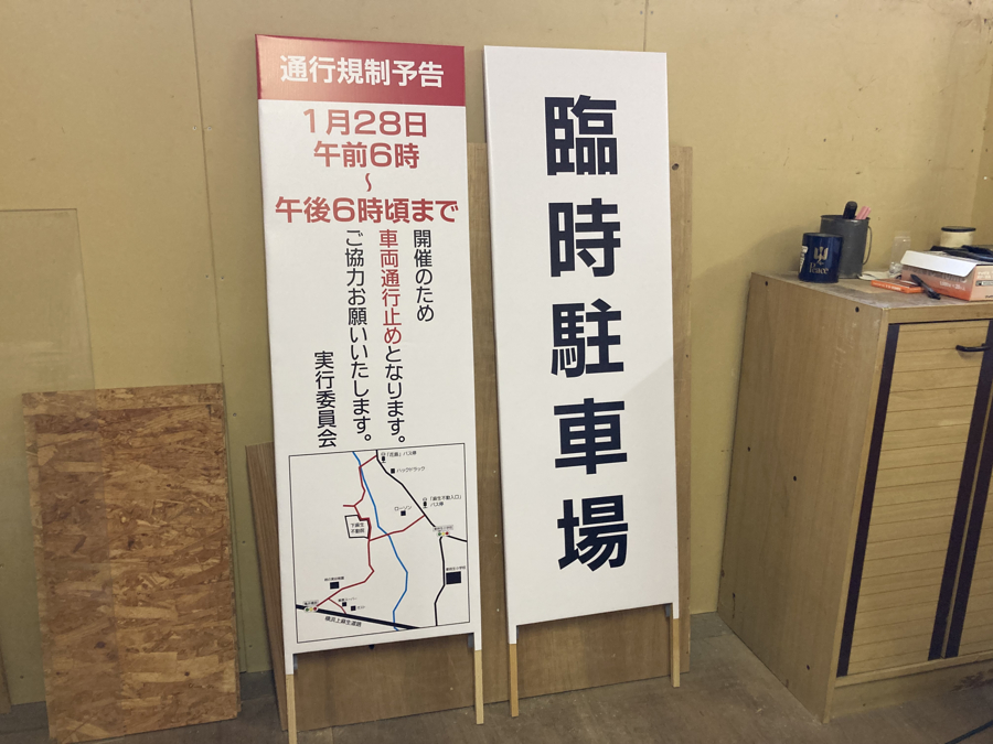 幅広捨て看板は駐車場の案内地図や初詣や七五三など大きくアピールしたいときに適しております。