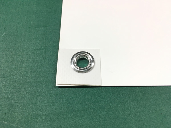 +100円で四隅への穴あけ(ハトメ)加工を承ります。フェンスなどにロープで括り付ける場合に便利です。