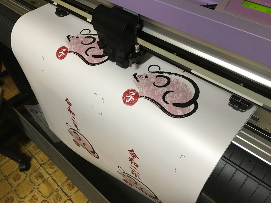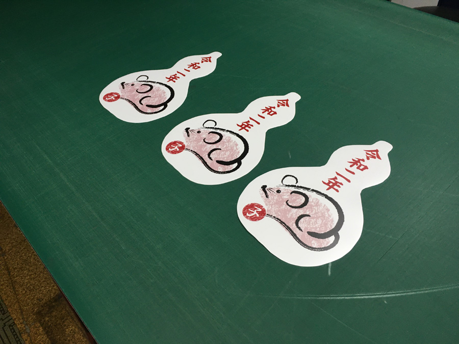 カッティングプロッターを使用し、円形やキャラクターの形など、自由な形状にカットできます。店内のPOPや看板代わりにも最適です。